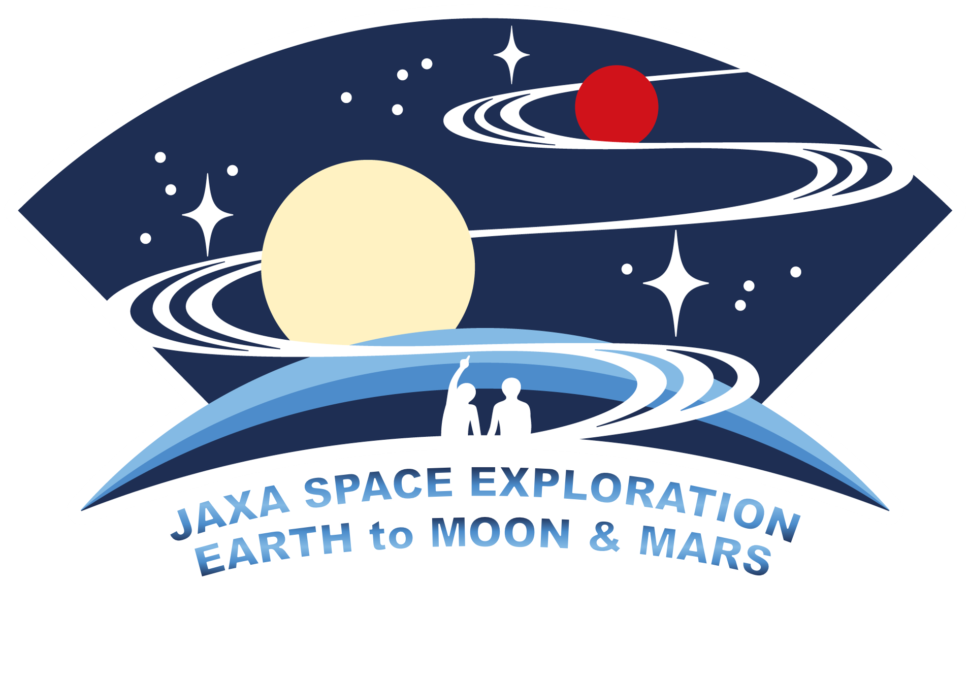 We are pleased to announce that the JAXA Space Exploration Center (JSEC) has decided on the following "International Space Exploration Logo" to symbolize JAXA's future lunar and Mars exploration activities.